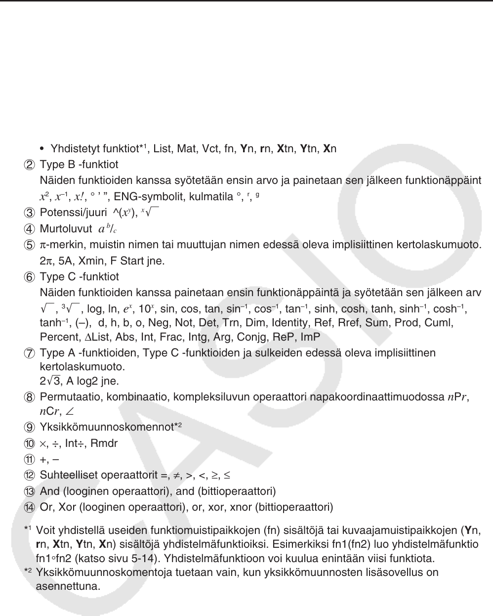fn2 (katso sivu 5-14). Yhdistelmäfunktioon voi kuulua enintään viisi funktiota.