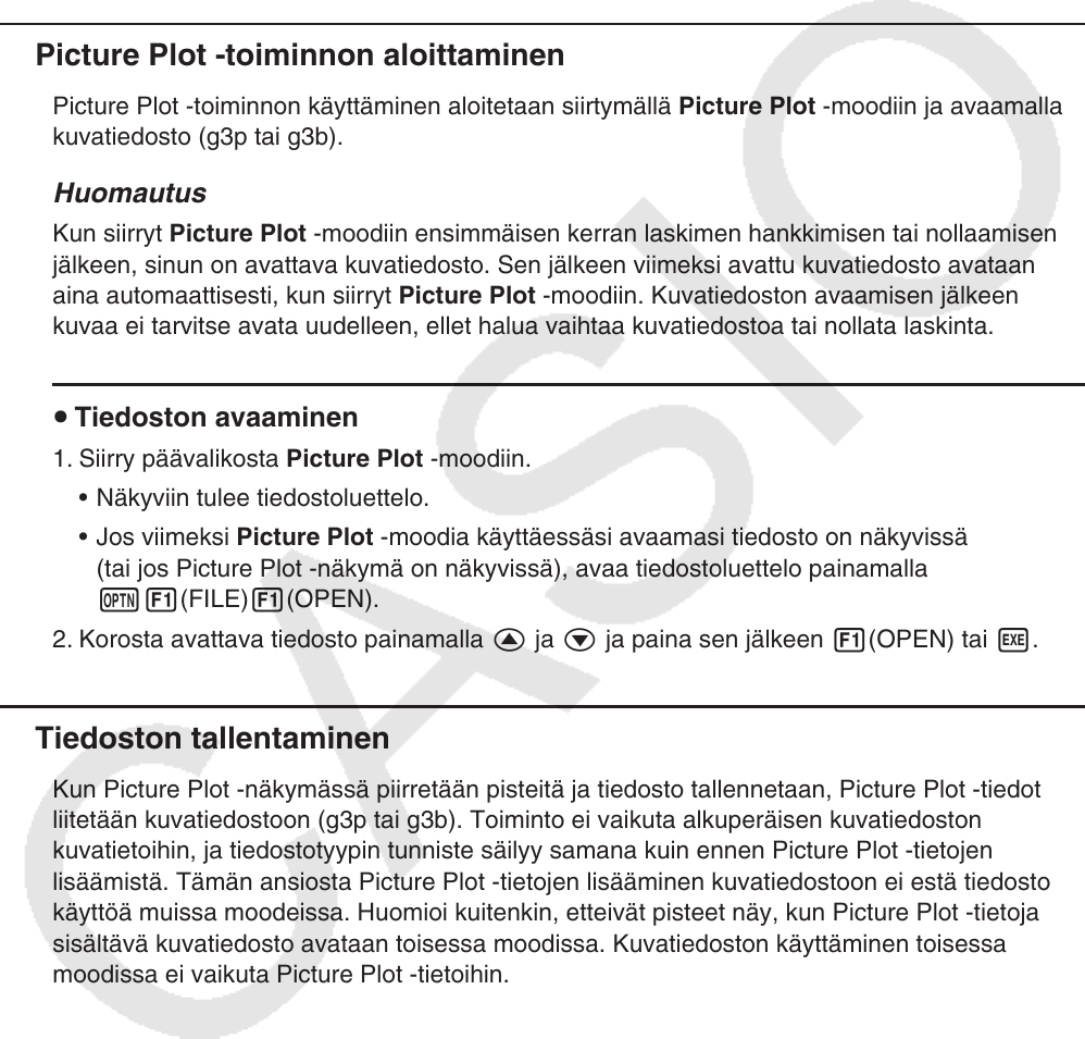 aina automaattisesti, kun siirryt Picture Plot -moodiin. Kuvatiedoston avaamisen jälkeen