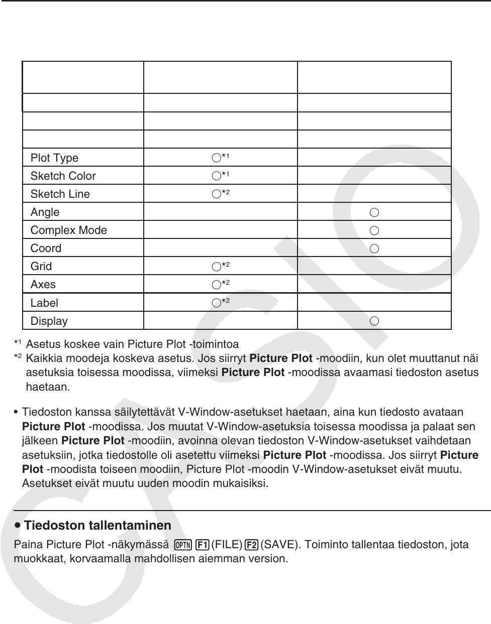 asetuksiin, jotka tiedostolle oli asetettu viimeksi Picture Plot -moodissa. Jos siirryt Picture