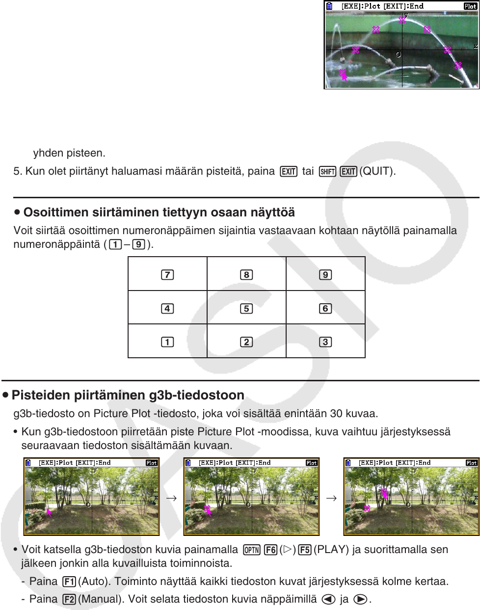 • Kun g3b-tiedostoon piirretään piste Picture Plot -moodissa, kuva vaihtuu järjestyksessä