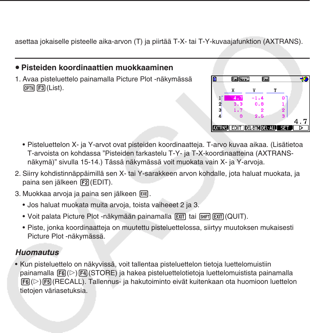 painamalla 6( g) 4(STORE) ja hakea pisteluettelotietoja luettelomuistista painamalla