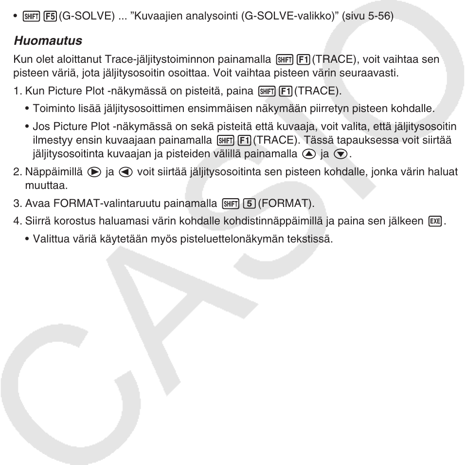 • !5(G-SOLVE) ... ”Kuvaajien analysointi (G-SOLVE-valikko)” (sivu