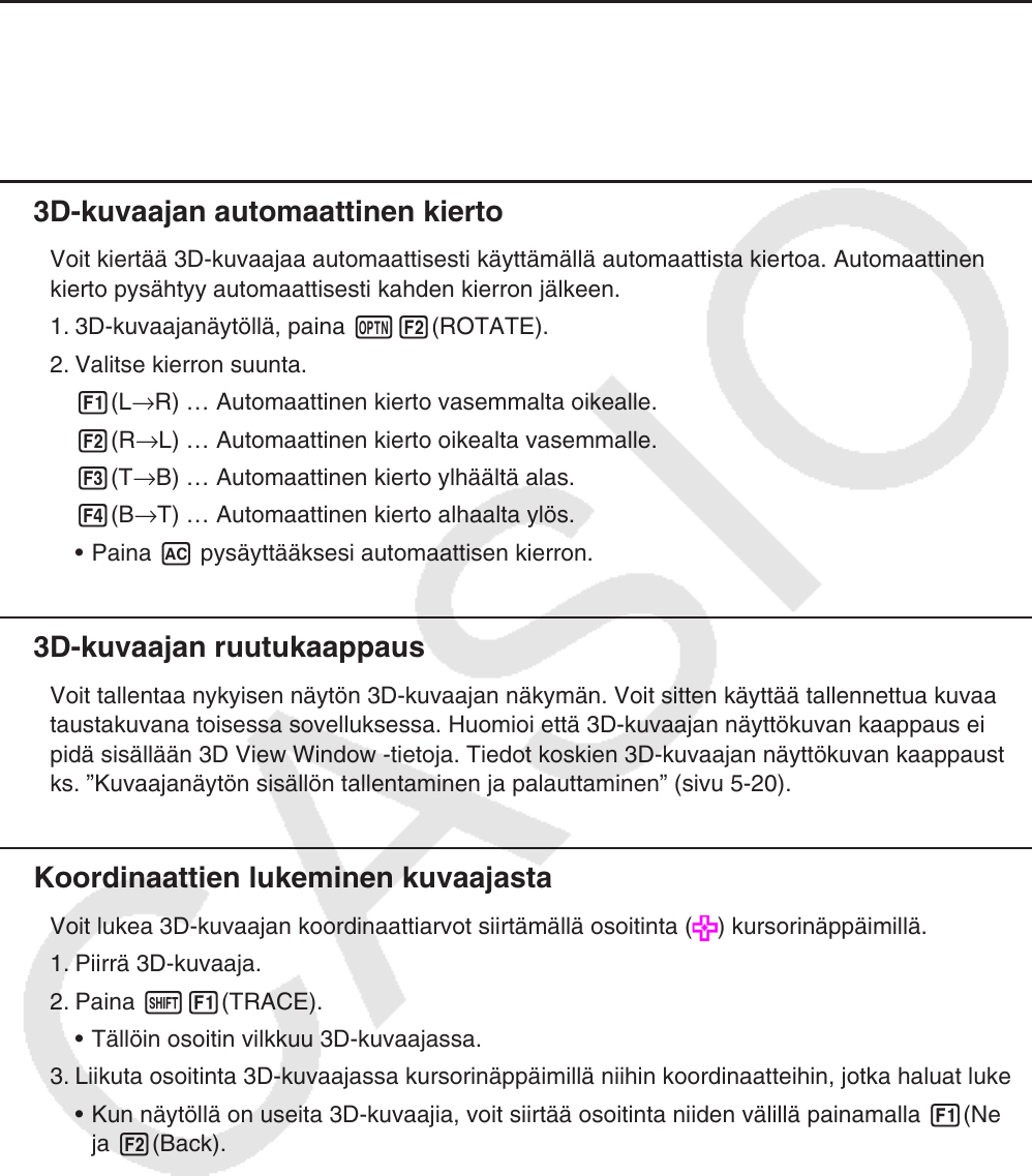 Voit lukea 3D-kuvaajan koordinaattiarvot siirtämällä osoitinta ( ) kursorinäppäimillä.
