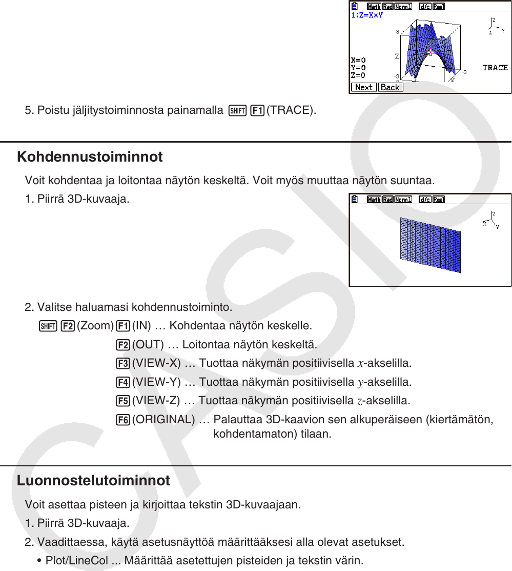 saa osoittimen siirtymään haluttuun pisteeseen. (Z= vain kuvaaja/parametrinen kuvaaja)