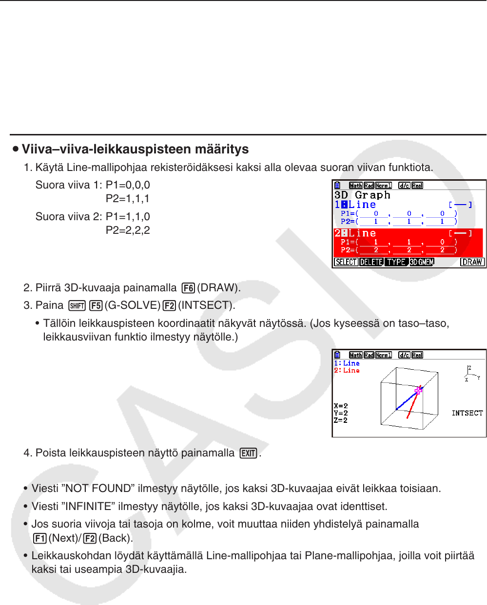 • Viesti ”NOT FOUND” ilmestyy näytölle, jos kaksi 3D-kuvaajaa eivät leikkaa toisiaan.