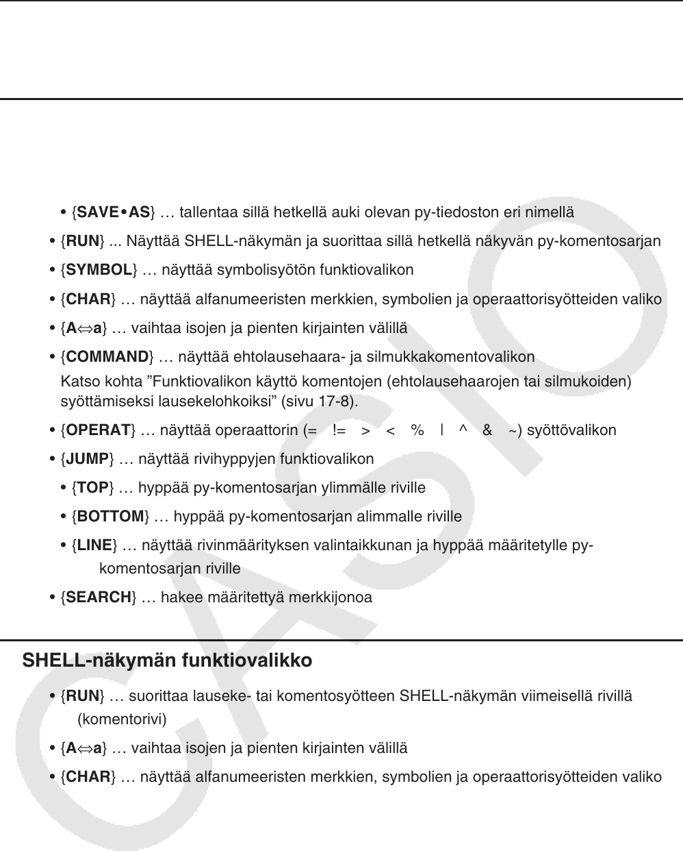 - Luku 17 Python (vain fx-CG50, fx-CG50 AU)