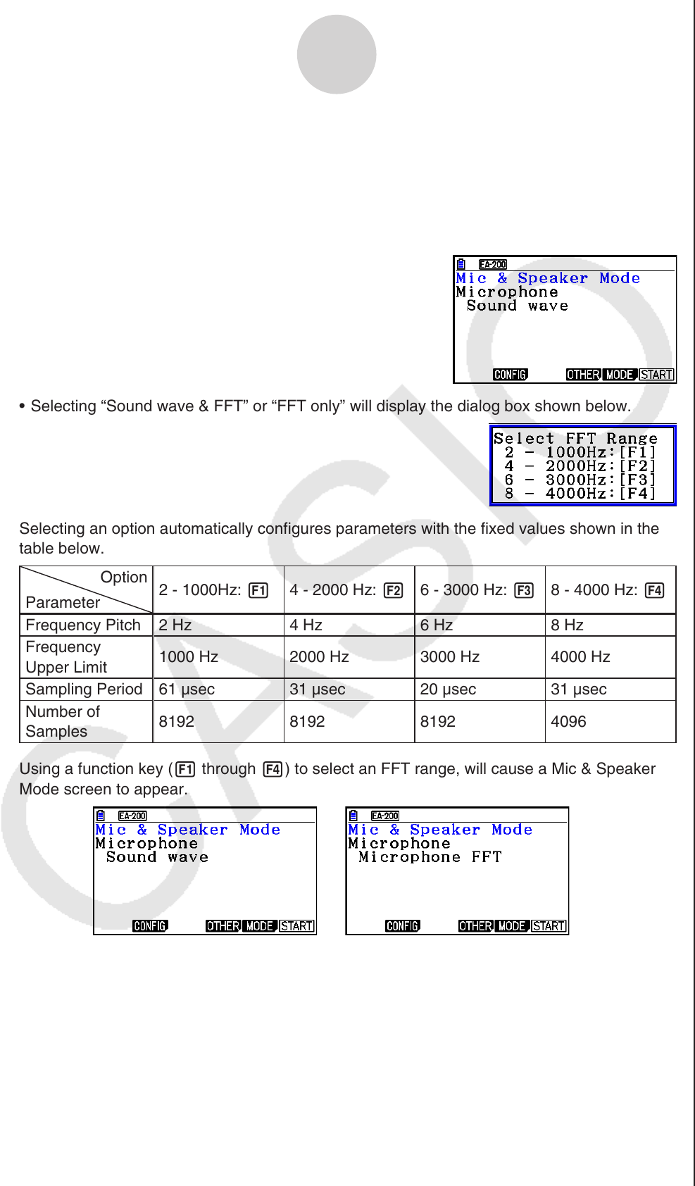 • Selecting “Sound wave & FFT” or “FFT only” will display the dialog box shown below.