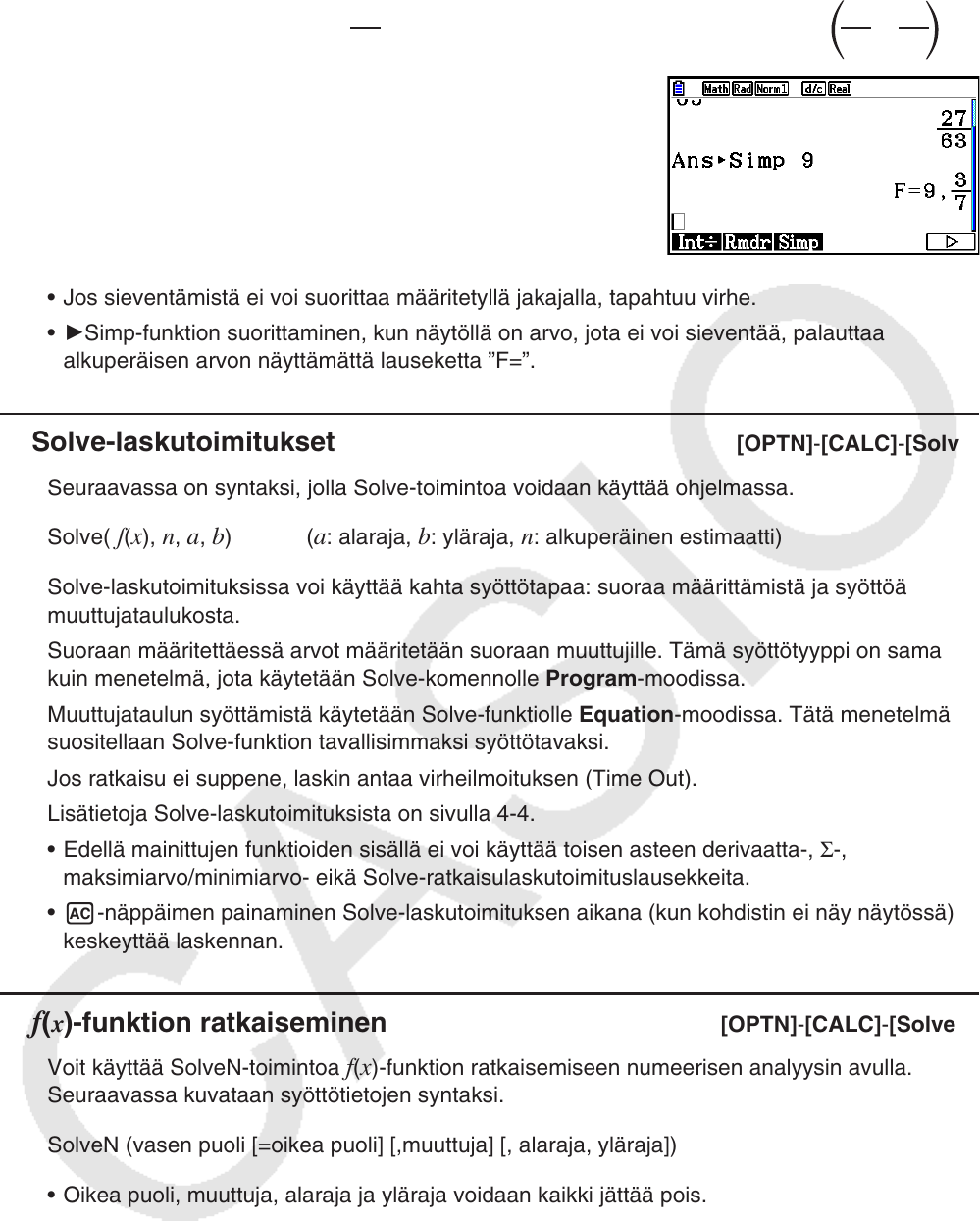 k Solve-laskutoimitukset [OPTN]-[CALC]-[Solve]