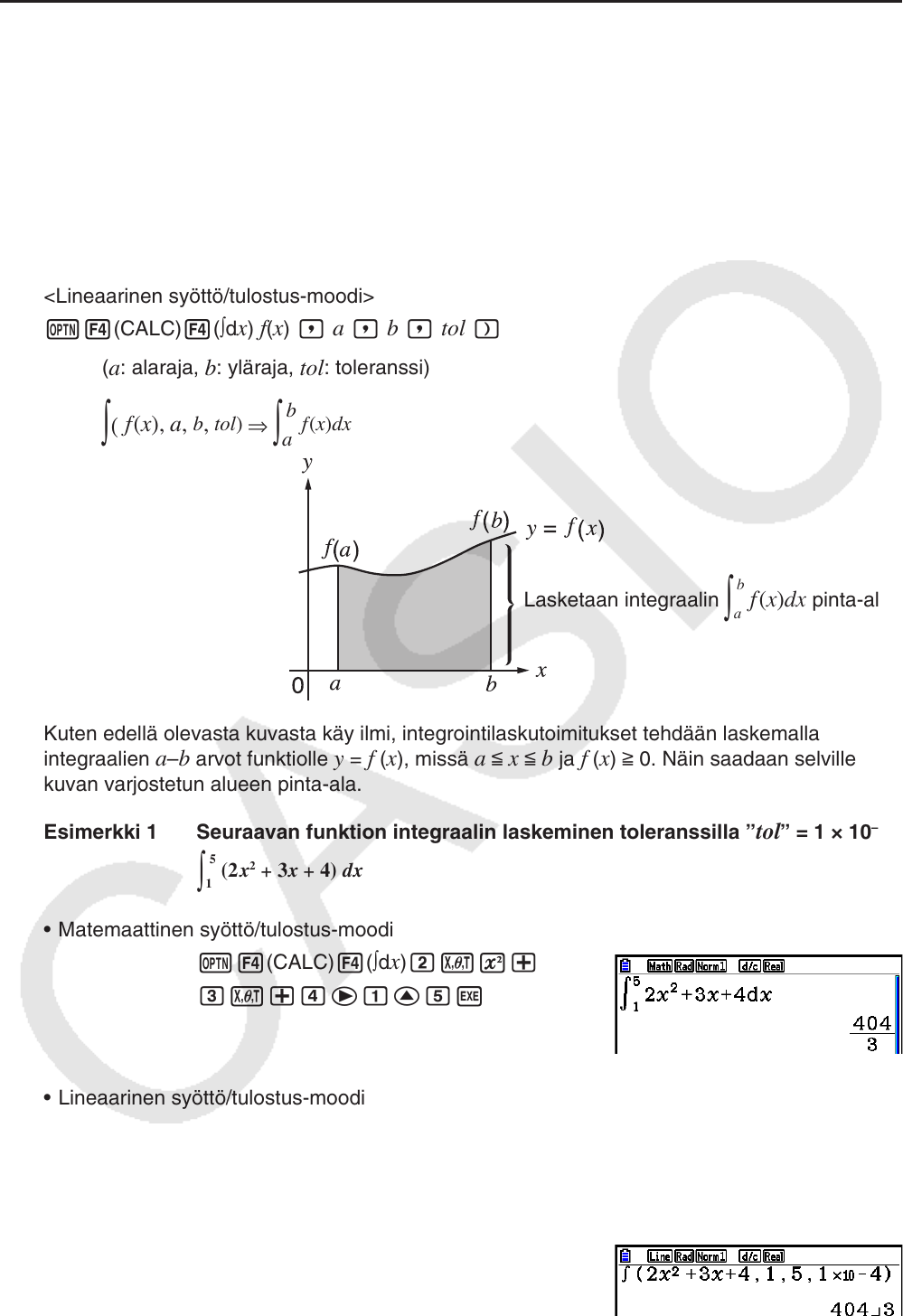 k Integrointilaskutoimitukset [OPTN]-[CALC]-[∫dx]