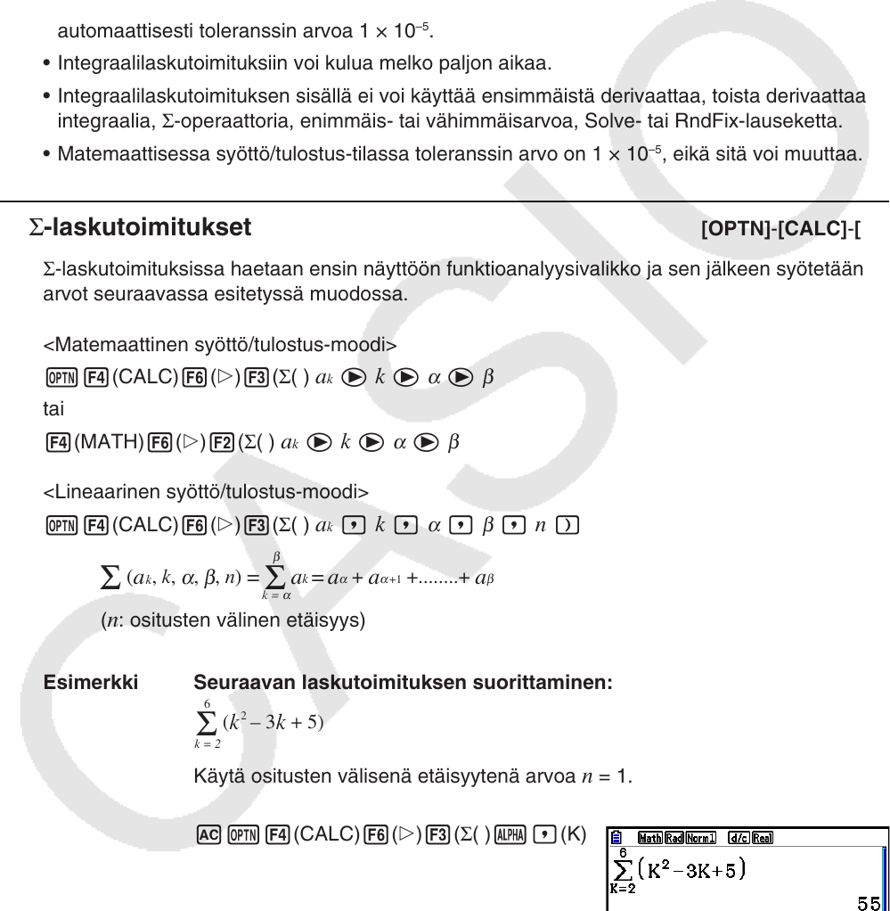 k Σ-laskutoimitukset [OPTN]-[CALC]-[Σ(]