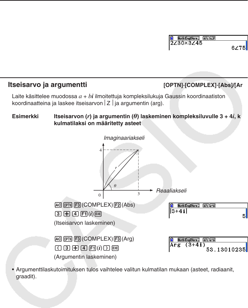 k Itseisarvo ja argumentti [OPTN]-[COMPLEX]-[Abs]/[Arg]