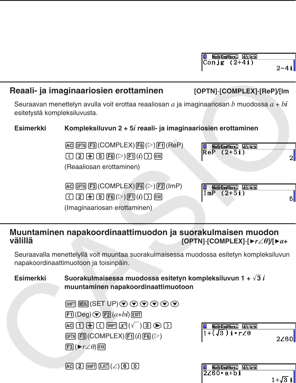k Liittoluvut [OPTN]-[COMPLEX]-[Conjg]