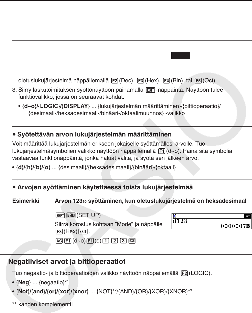 • {d~o}/{LOGIC}/{DISPLAY} ... {lukujärjestelmän määrittäminen}/{bittioperaatio}/