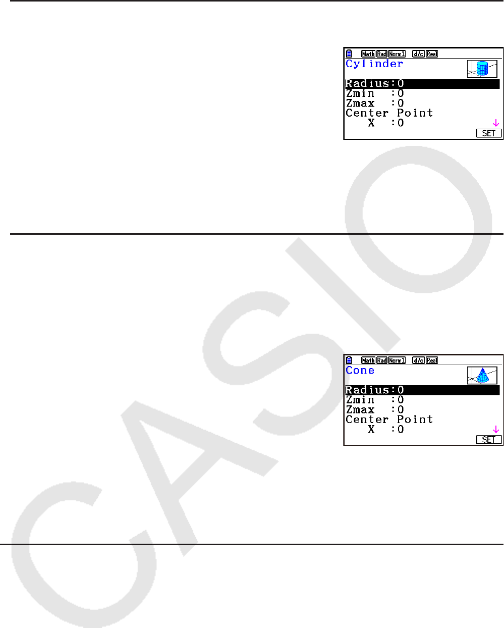 Saisissez le rayon, la hauteur maximum, la hauteur minimum et le point central du cylindre.