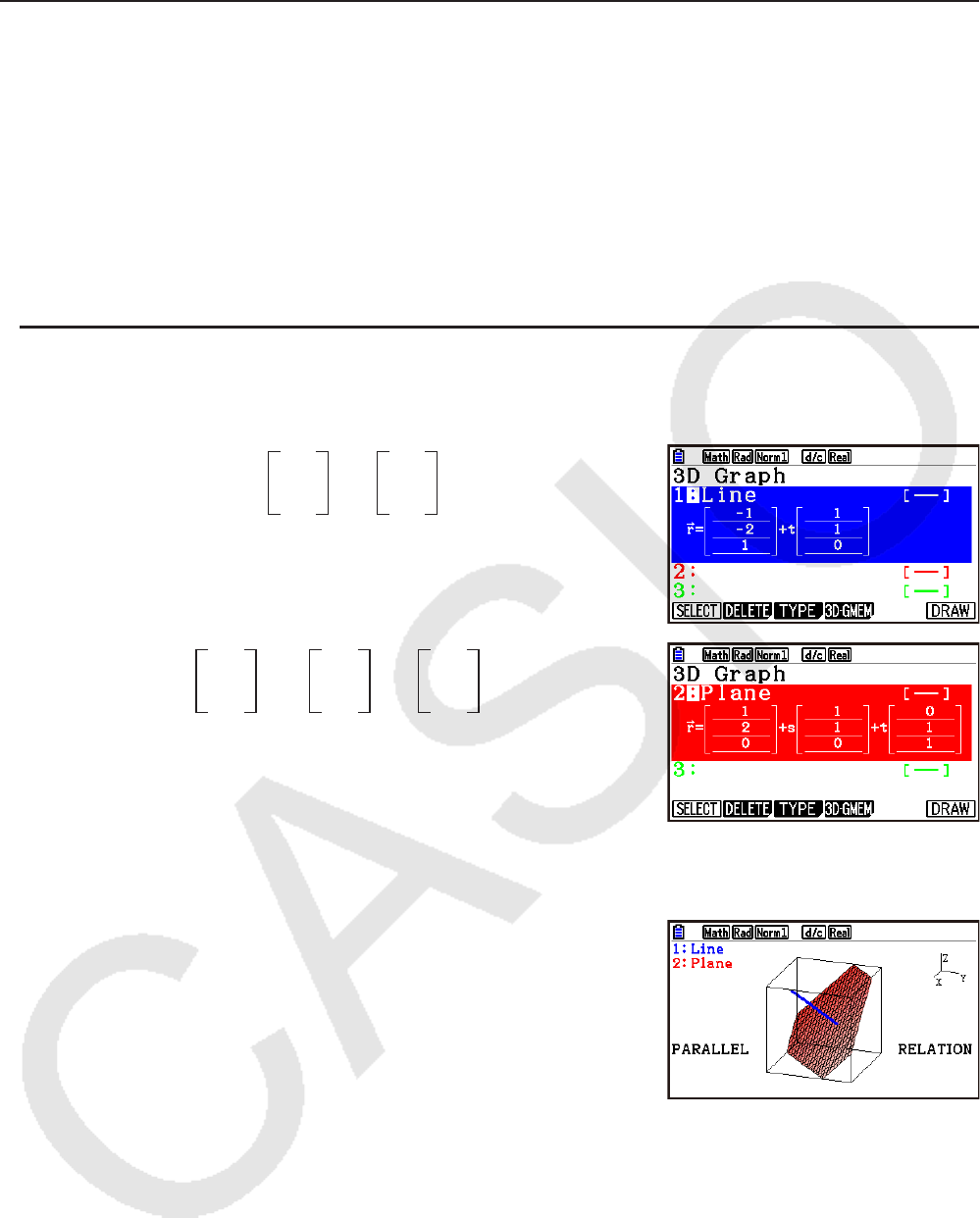 Pour déterminer la relation, vous devez utiliser le modèle Line ou Plane pour tracer deux •