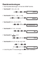 kBerekeningen met FIX, SCI, NORM, RND, RAN# en ENG • Voorbeeld 1: 1,234 1,234, met het resultaat op twee cijfers afgerond (FIX 2). FIX F72 0.00 1.234 +1.234 = 2.47 FIX • Voorbeeld 2: 1,234 1,234, met het resultaat op twee cijfers afgerond. F 7 2 1.234 A b + 1.234 A b = FIX 2.46 • Druk op F 9 om de instellingen van FIX te wissen. • Voorbeeld 3: 1 3 , waarbij het resultaat aangegeven wordt met twee signifikante cijfers (SCI 2). SCI F82 0.0 00 1\3= 3.