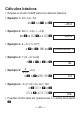 Cálculos básicos • Emplee el modo COMP para los cálculos básicos. • Ejemplo 1: 23 4,5 53 23 + 4.5 , 53 = –25.5 • Ejemplo 2: 56 ( 12) ( 2,5) 56 -12 E \ 2.5 E = 268.8 • Ejemplo 3: 2 3 (1 1020) 2 \ 3 -1 e 20 = 6.66666666719 • Ejemplo 4: 7 8 4 5=36 • Ejemplo 5: 7-8,4-5= 36. 6 =0,3 4 5 4-5 \6A N= 0.3 • Ejemplo 6: 2 [7 6 (5 4)] 122 2-O7+6- O5+ 4P P= 122. • Puedde omitir todas las operaciones P antes de la tecla =.
