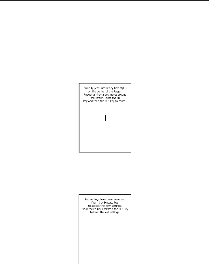 screen. The screen shown below appears after you press the stylus against the target