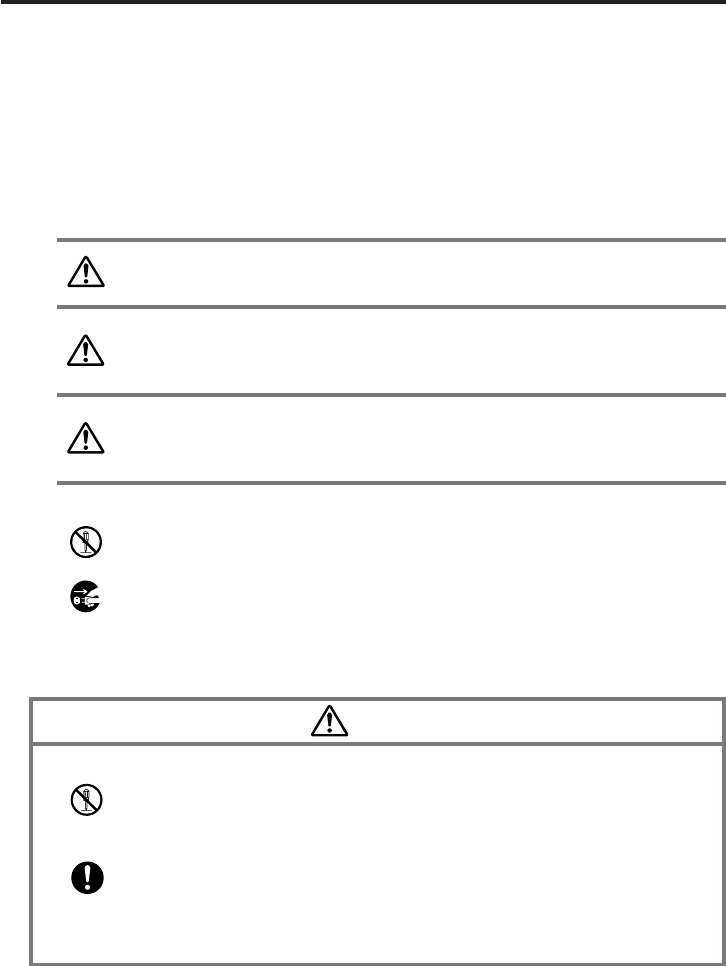 The following are the meanings of the markings and symbols used in these Safety