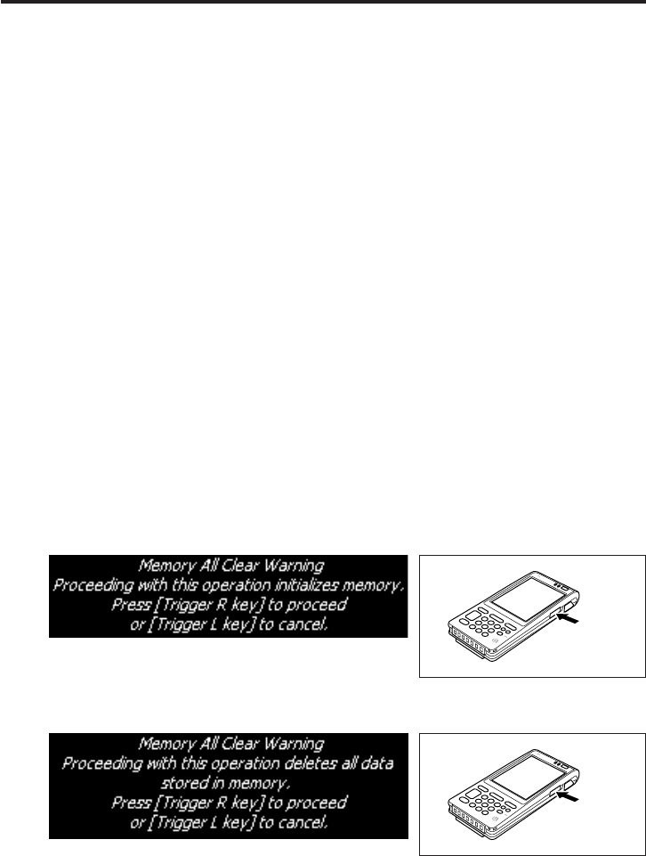 • When the Handheld Terminal does not operate normally due to a memory problem.