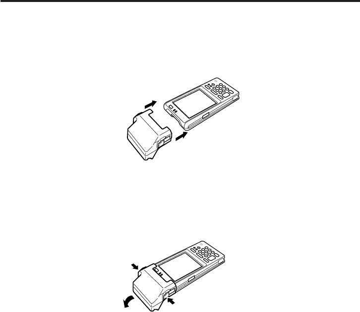 1.Attach the laser redirection attachment onto the Handheld Terminal as shown in the