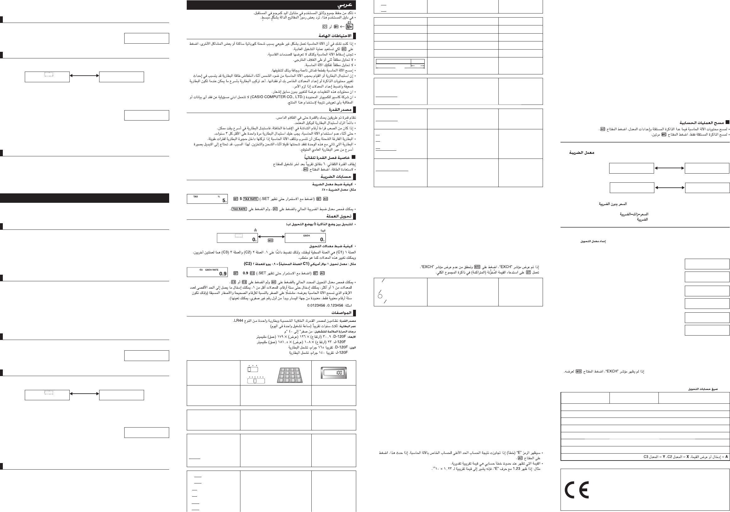 • 在電池電量較低時更換電池或使計算器照不到陽光可能會使比率設定或記憶體內容發生變更或丟失。