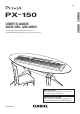 ES English PX -150 Español USER’S GUIDE GUÍA DEL USUARIO Please keep all information for future reference. Guarde toda información para tener como referencia futura. Safety Precautions Before trying to use the piano, be sure to read the separate “Safety Precautions”. Precauciones de seguridad Antes de intentar usar el piano, asegúrese de leer las “Precauciones de seguridad” separadas.