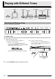 Playing with Different Tones Changing the Octaves of the duet keyboards 1. English You can change the ranges of the left and right keyboards in octave units from their initial default settings. This comes in handy, for example, if the initial default range is not enough when one person is playing the left hand part and another person is playing the right hand part.