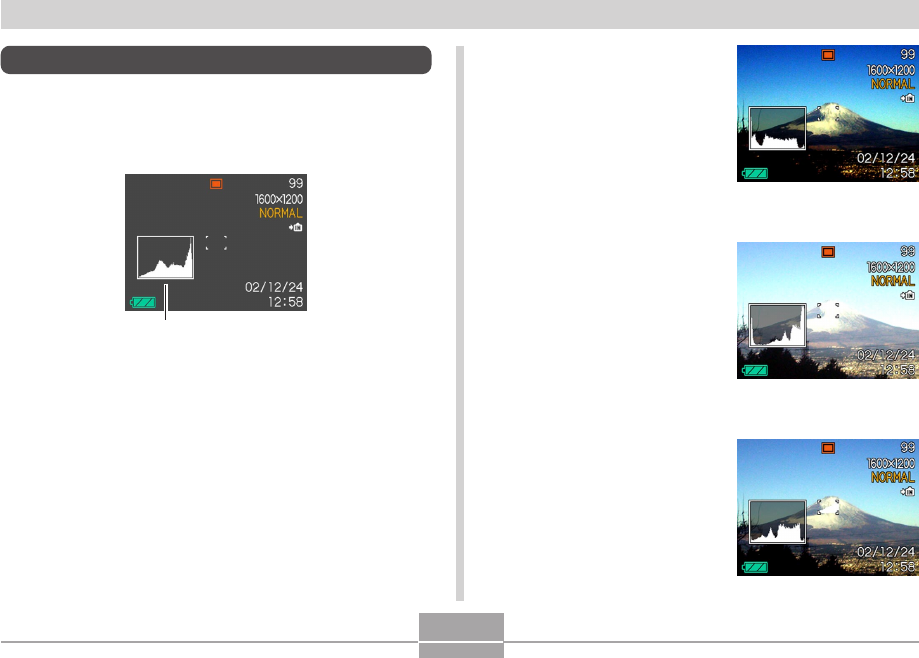 使用DISP鈕能在顯示幕畫面上表示直方圖﹐讓您