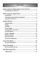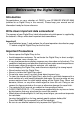 Contents Before using the Digital Diary for the first time... ............... 1 Turning Power On and Off ........................................................... 3 Before using the Digital Diary... ............................................ 8 Introduction ................................................................................... 8 Write down important data somewhere! .................................... 8 Important Precautions .................................................................