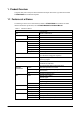 1.2 Library Configuration The V-T500/V-N500 Software Development Kit (“BDK”) provides various libraries including those listed in the table. Table 1.2 Library System Library SAM Library Authentication library Camera scanning library Description Library that is used to control the system. Library that is used to communicate with the SAM Card. Library that is used to set the authentication function such as the password. Library that is used to scan symbols with the camera.