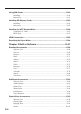 Contents Chapter 1 Essential Reading ................................................. E-5 Safety Precautions .........................................................................................E-6 Operating Precautions .................................................................................E-13 Important ......................................................................................................E-16 After Service ......................................................................
