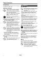 Operating Precautions Vent Outlets • Vent outlets become very hot during projection. Never touch vents or allow them to become blocked. • Do not insert foreign objects. Bottom Projector Light Emission • Never block light output while the light is on. • Never look directly into the lens while the light is on. Particular care is required when children are present.