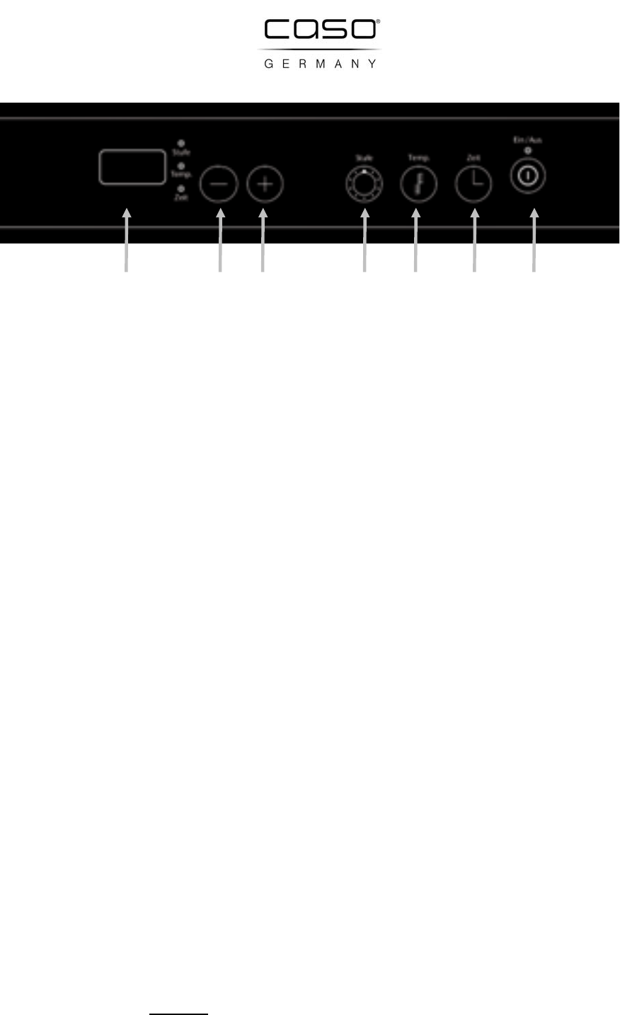 6. Wahltaste (-), Reduzierung der Leistungsstufe, Temperatur oder Dauer