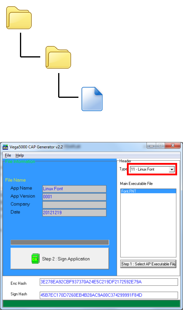 Sign the file using CAP Generator, the type must set to “11 – Linux Font”.