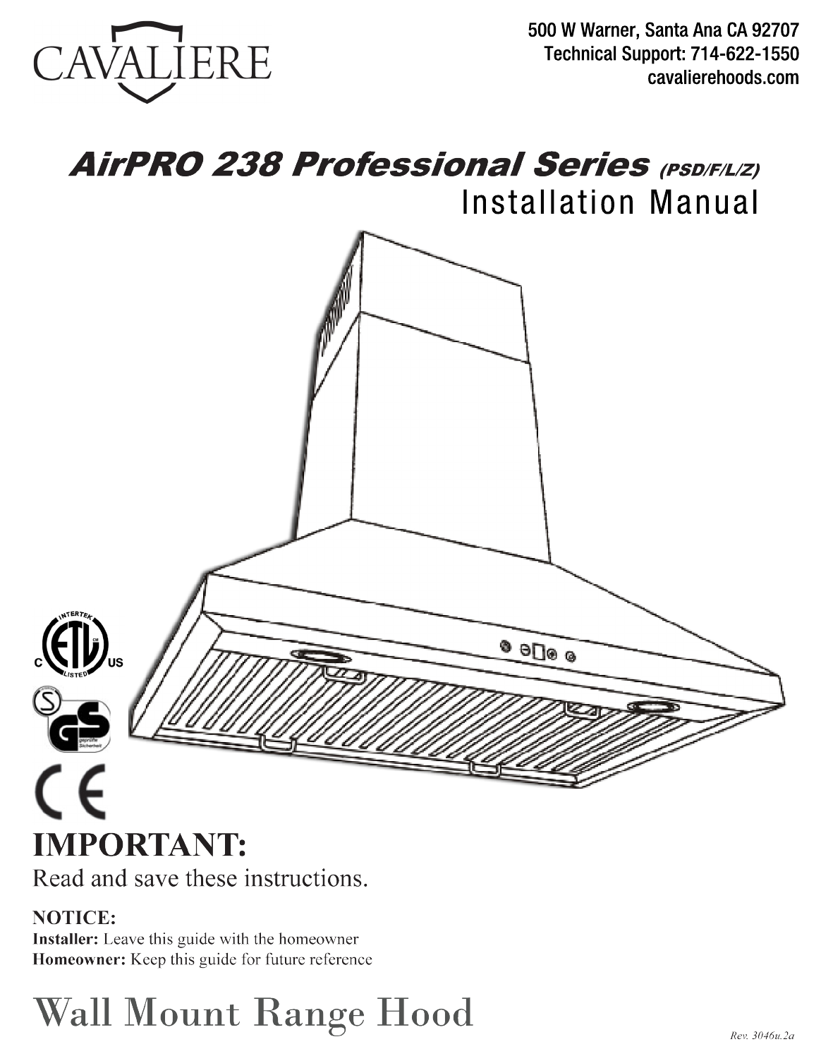 Important Safety Notice Read all Instructions before Installing and operating this appliance • • • • • The installation in this manual is intended for qualified installers, service technicians or persons with similar qualified background. Installation and electrical wiring must be done by qualified professionals and in accordance with all applicable codes and standards, including fire-rated construction. DO NOT attempt to install this appliance yourself.