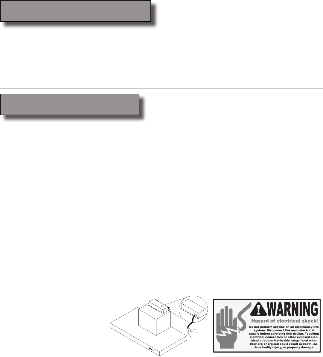 RISK OF ELECTRICAL SHOCK. This range hood must be properly grounded. Check with a qualied elec-