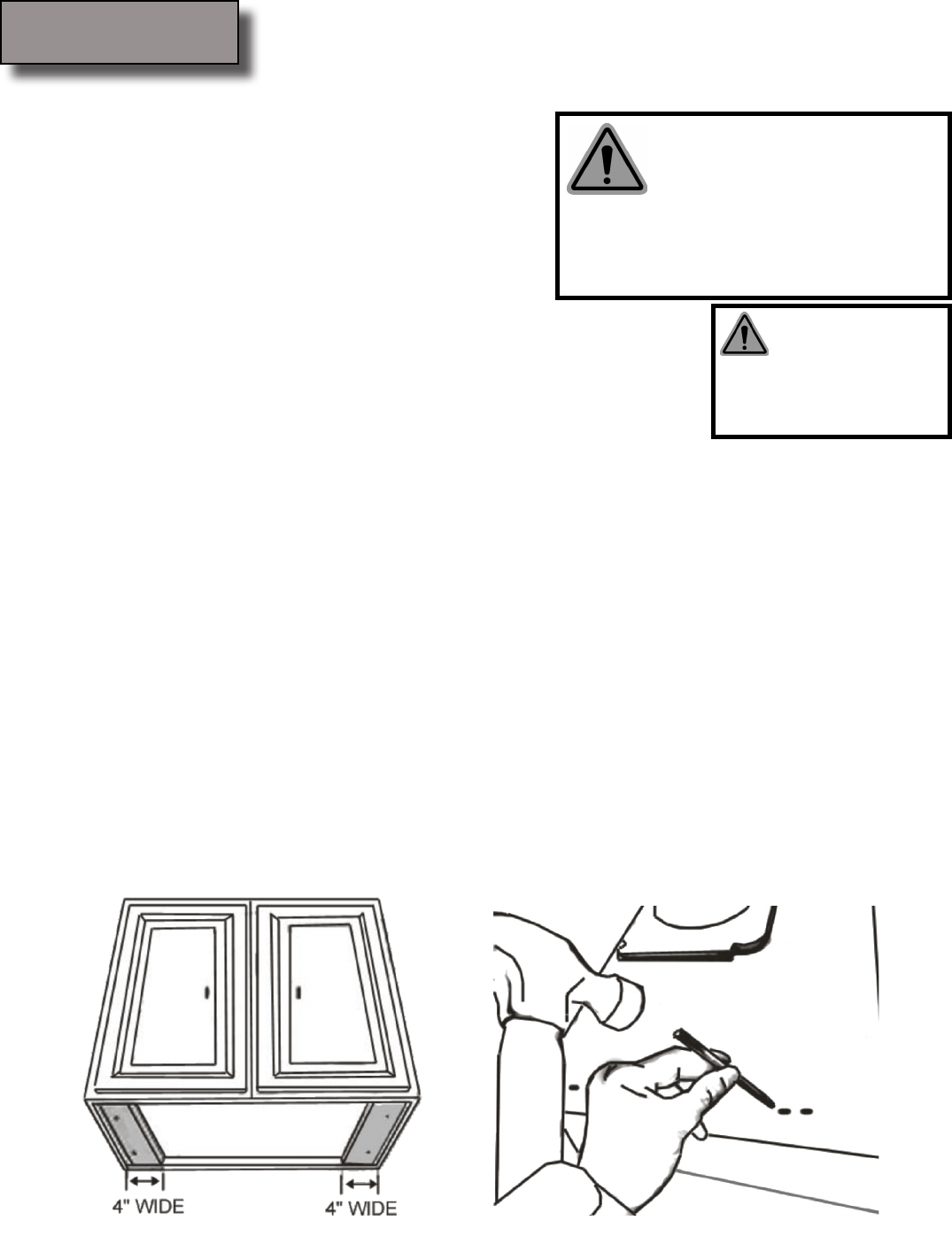 For installing under the cabinet with recessed bottom, attach 4-inch wide wood ller strips (not provided) on •