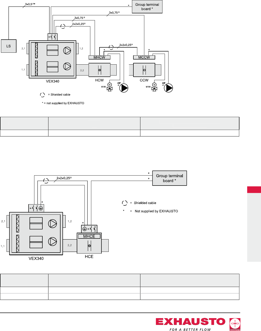 VEX340 with external heating coil - Water heating coil (HCW) / cold water coil (CCW)