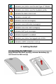 Indicates your phone uses the alert type of “Vibrate”. Indicates your phone uses the headsets profile settings. Indicates the alarm clock is set. Indicates a missed call. Indicates new text message(s). Indicates new multimedia message(s). Indicates new voice mail message(s). Indicates WAP push messages. Indicates stopwatch is enabled. Indicates your phone has logged onto GPRS. Indicates a WIFI connection is set up. 2 Getting Started 2.1 Inserting the SIM Card 2.1.