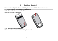 2. Getting Started Please read the safety instructions in the "Safety Information and Notices" section before use. 2.1 Inserting the SIM Card and the battery 2.1.1 Remove the back cover and battery Make sure the phone is switched off. 2.1.2 Insert or remove the SIM card Make sure that the metallic contacts are facing downwards.