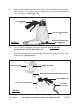 9. Attach the Brake Bleeding Hose w/Connector (5) to the Bleeder Screw on the vehicle wheel. Then, connect the air compressor’s air hose to the Handle of the Gun Assembly (6). (See Figure D.) GUN ASSEMBLY (6) OLD FLUID CONTAINER (4) BRAKE BLEEDING HOSE W/CONNECTOR (5) FIGURE C 10. Turn on the air compressor, and set its regulator at 90 to 120 PSI. Do not exceed 120 PSI. (See Figure A.) 11. Squeeze the Lever of the Gun Assembly (6) to create a vacuum in its Old Fluid Container (4). (See Figure D.