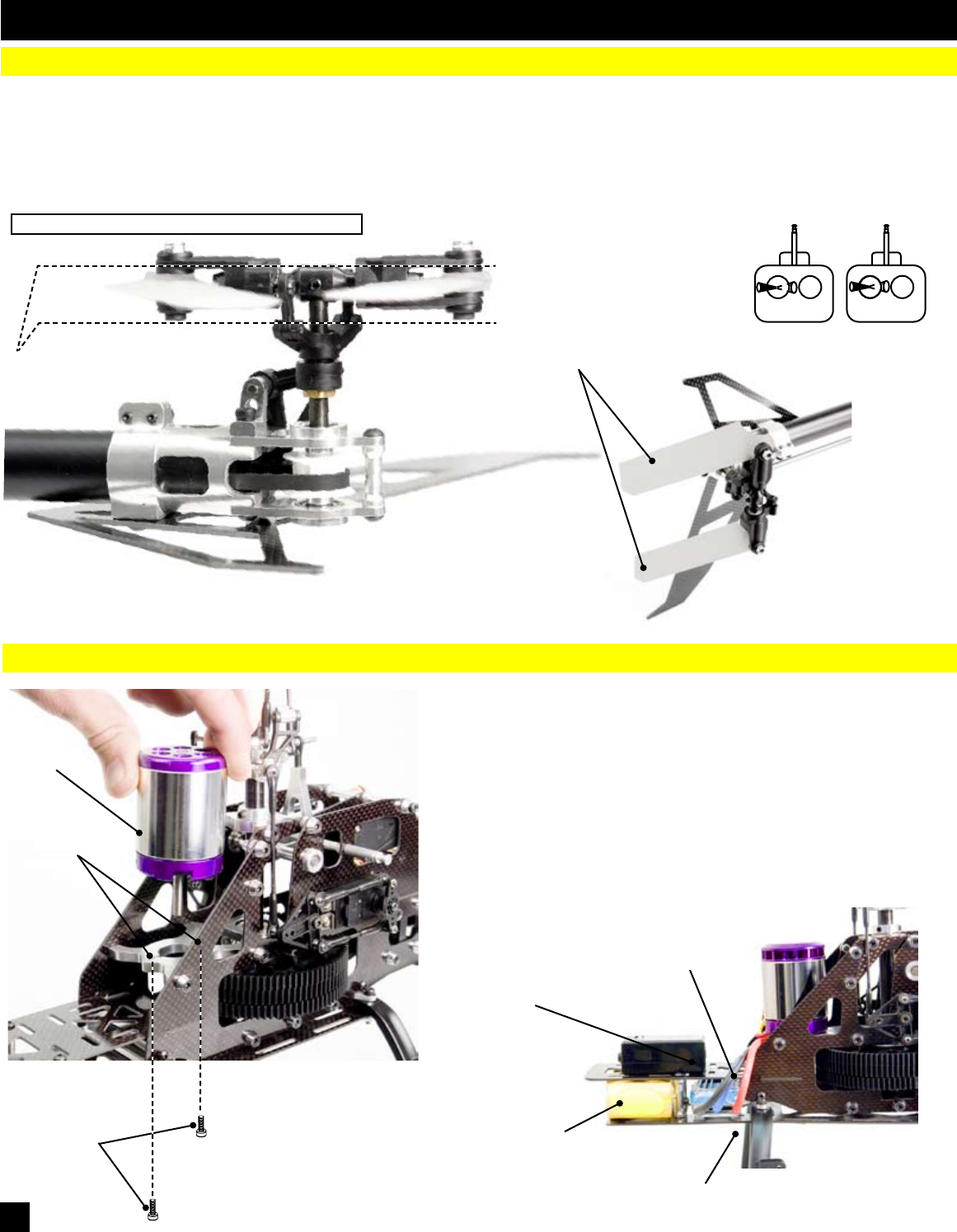 shaft. The tail blades should have no pitch in that position. Tighten the tail rotor blades until the blade grips hold rm yet soft