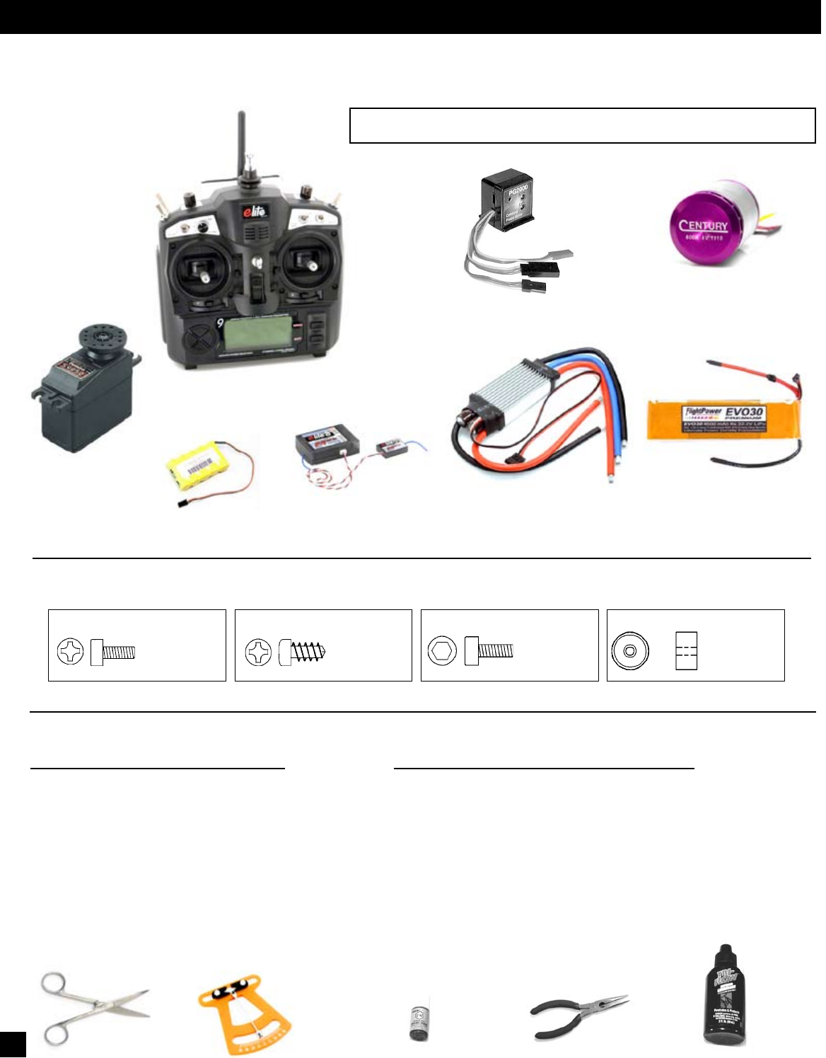This is the general list of items required to get the Swift Carbon 620 helicopter ying. Century produces a full spectrum of accessories