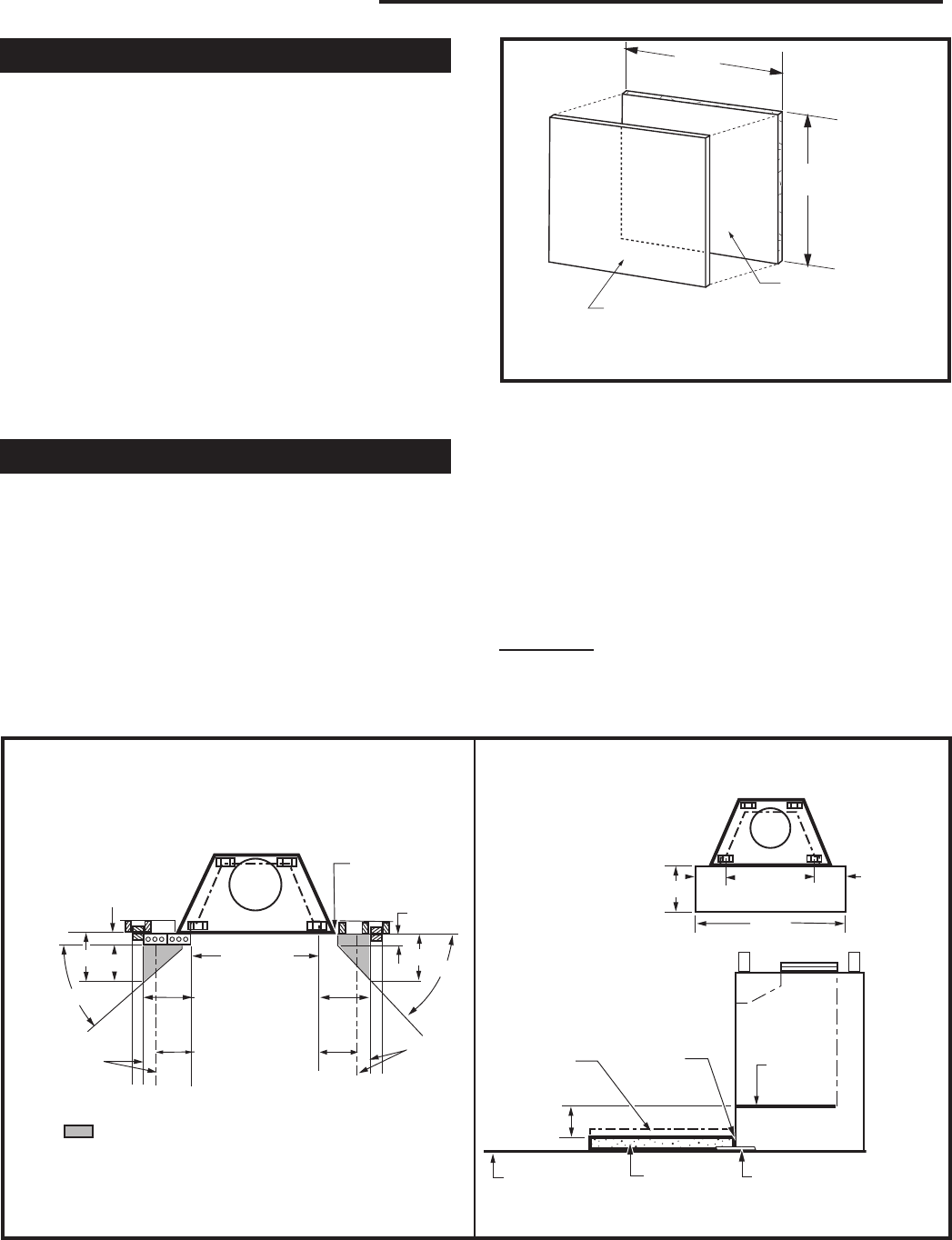Fig. 27 Combustible side wall protection and hearth extension dimensions.
