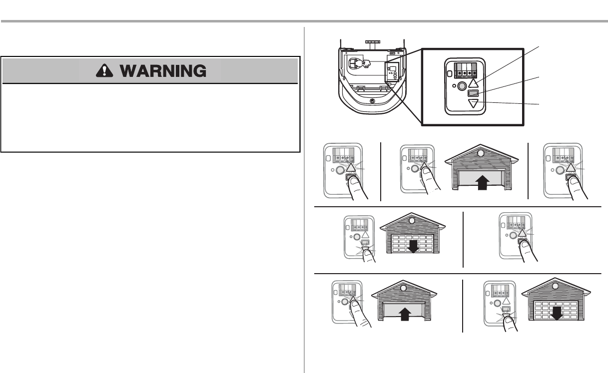6. Press and release the UP Button. When the door travels to the programmed UP position,the