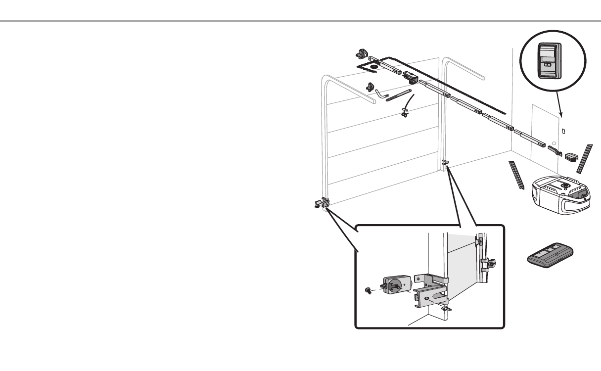 illustrated below.Accessories vary depending on the garage door opener model purchased. Depending