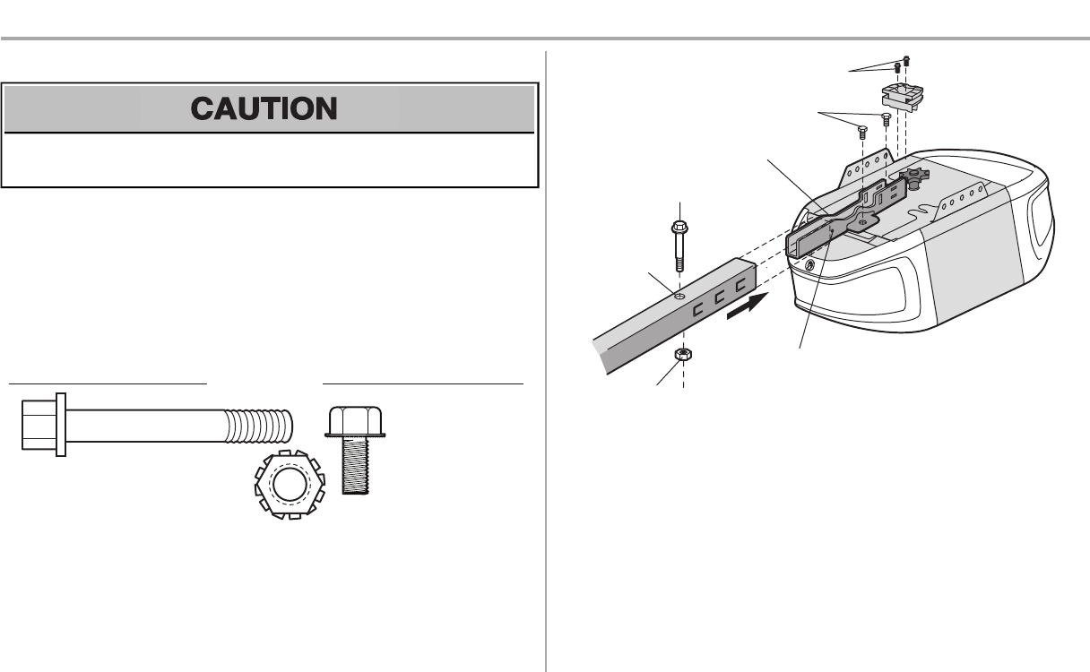 To avoid SERIOUS damage to garage door opener,use ONLY those bolts/fasteners mounted in the
