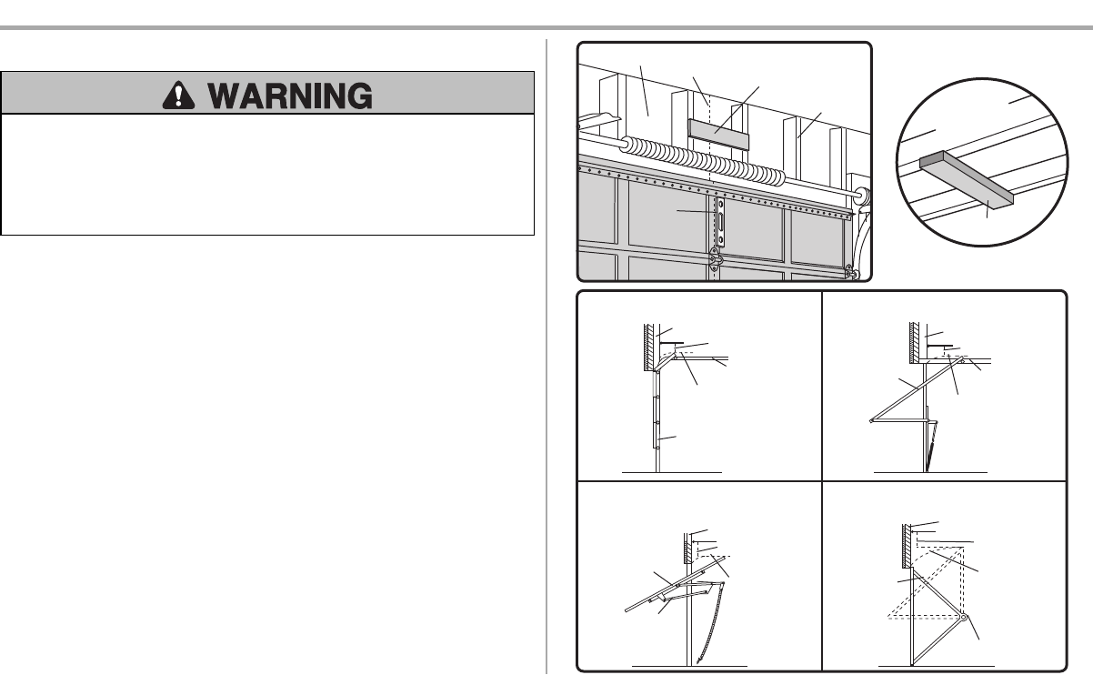 l Concrete anchors MUST be used if mounting header bracket or 2x4 into masonry.