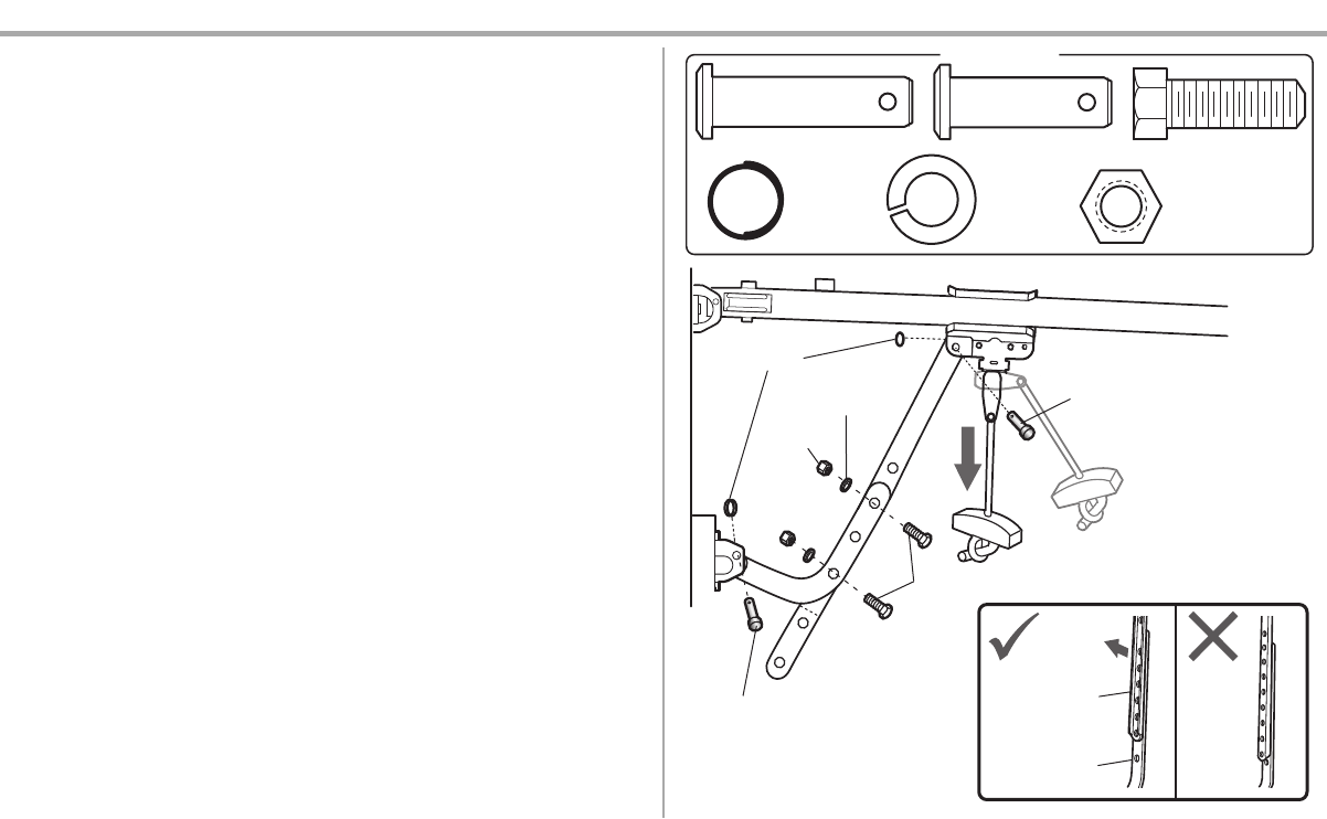 2. Attach the straight door arm to the outer trolley using the clevis pin. Secure with the ring fastener.